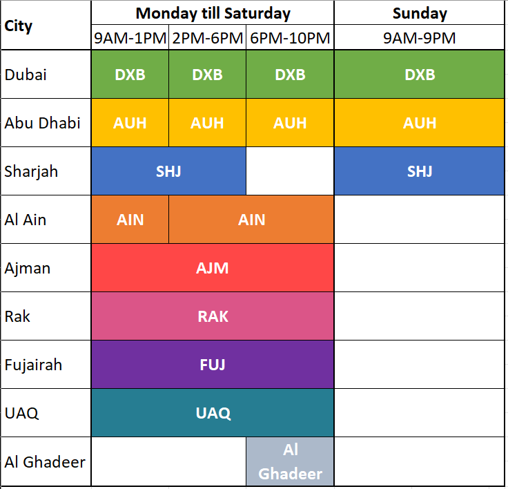 Same Day Dubai: delivery between 2-6 PM except on Sunday